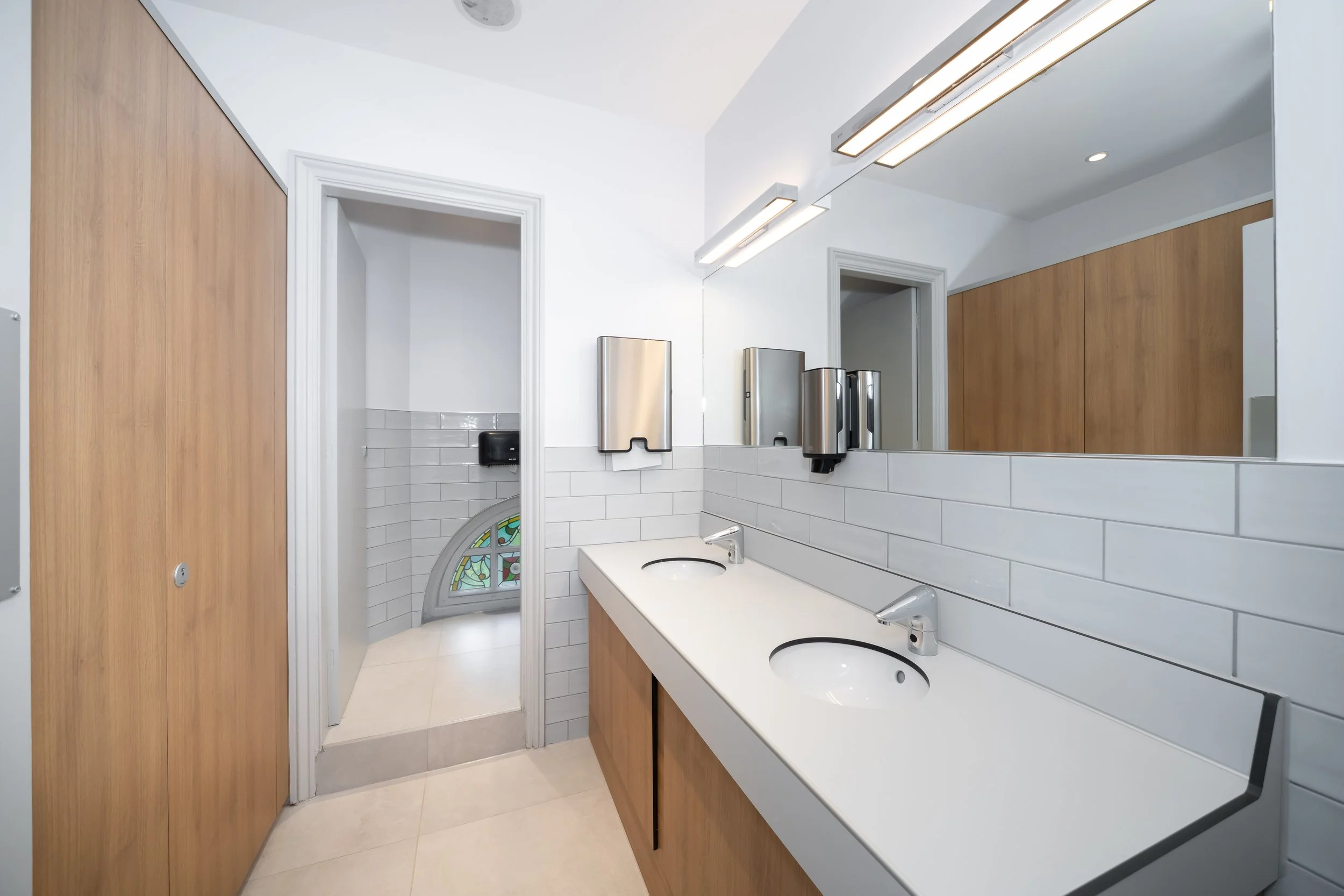 The front of house toilet facilities received a full refurbishment and re-configuration to provide better facilities throughout the building. Specialist auditorium repairs were completed along with a full redecoration.